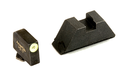 AmeriGlo suppressor height sets provide an elevated sight picture, able to co-witness with slide-mounted miniature red dot optics and suppressors. This flat black rear with tritium front sight set is designed for use on Glock MOS pistols using the Aimpoint ACRO and Holosun 509T optics For more information on how to choose the correct height set for your suppressor or optic, visit the AmeriGlo website, under the INFO tab.
