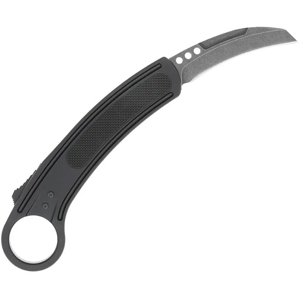 The CobraTec Karambit is a fully automatic double-action OTF knife designed for fast deployment and dependable carry. Built with all CNC-machined construction, it offers a precision fit and durable performance. The D2 steel stonewashed blade is activated by a thumb switch positioned near the retention ring, making reverse grip draws smooth and efficient. Lightweight, rugged, and comfortable in the hand, this karambit is built for both right- and left-hand carry. Backed by a lifetime warranty, it combines tactical function with ergonomic design.