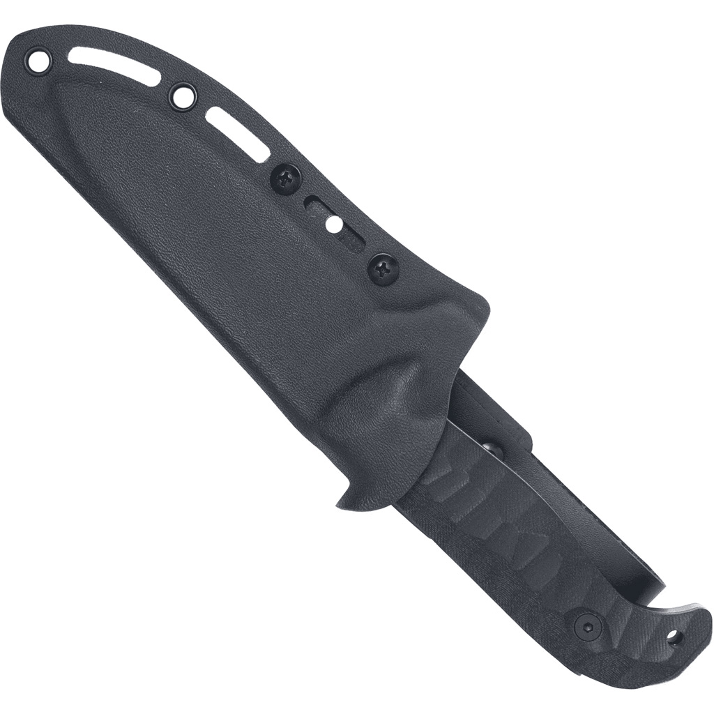 The PSK (Pilot Survival Knife), is a modern-day survival essential designed for aviators, outdoorsmen and hunters who demand reliability in the most extreme conditions. This knife features a spear point blade with a false swedge for excellent penetration while maintaining tip strength. The 14C28N stainless steel blade with saber grind strikes the perfect balance between strength and cutting performance. The ergonomic G-10 handle is built to endure rugged use. An exposed pommel adds utility, doubling as a hammer, while the innovative curved finger guard provides superior protection. All edges of the knife have been rounded to prevent stress cracks even in cold conditions. Lifetime warranty