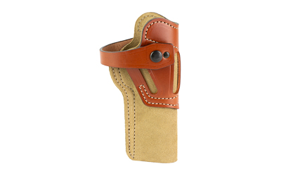 The Wild Hog Field and Range Holster can be worn cross draw or with a forward cant and is ambidextrous. It’s built from premium top grain steer hide and center cut steer hide and features an adjustable tension device. It is now or soon will be available for most SAA revolvers, large frame DA revolvers and many large autoloaders as well. It accommodates belts up to 1.75″.