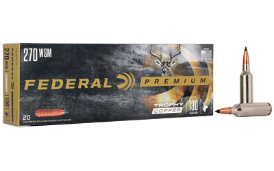 Get pinpoint accuracy, superior penetration and aggressive expansion in a copper, polymer-tipped bullet with Trophy(R) Copper. The projectile provides flat trajectories and tremendous downrange performance on everything from antelope to moose.