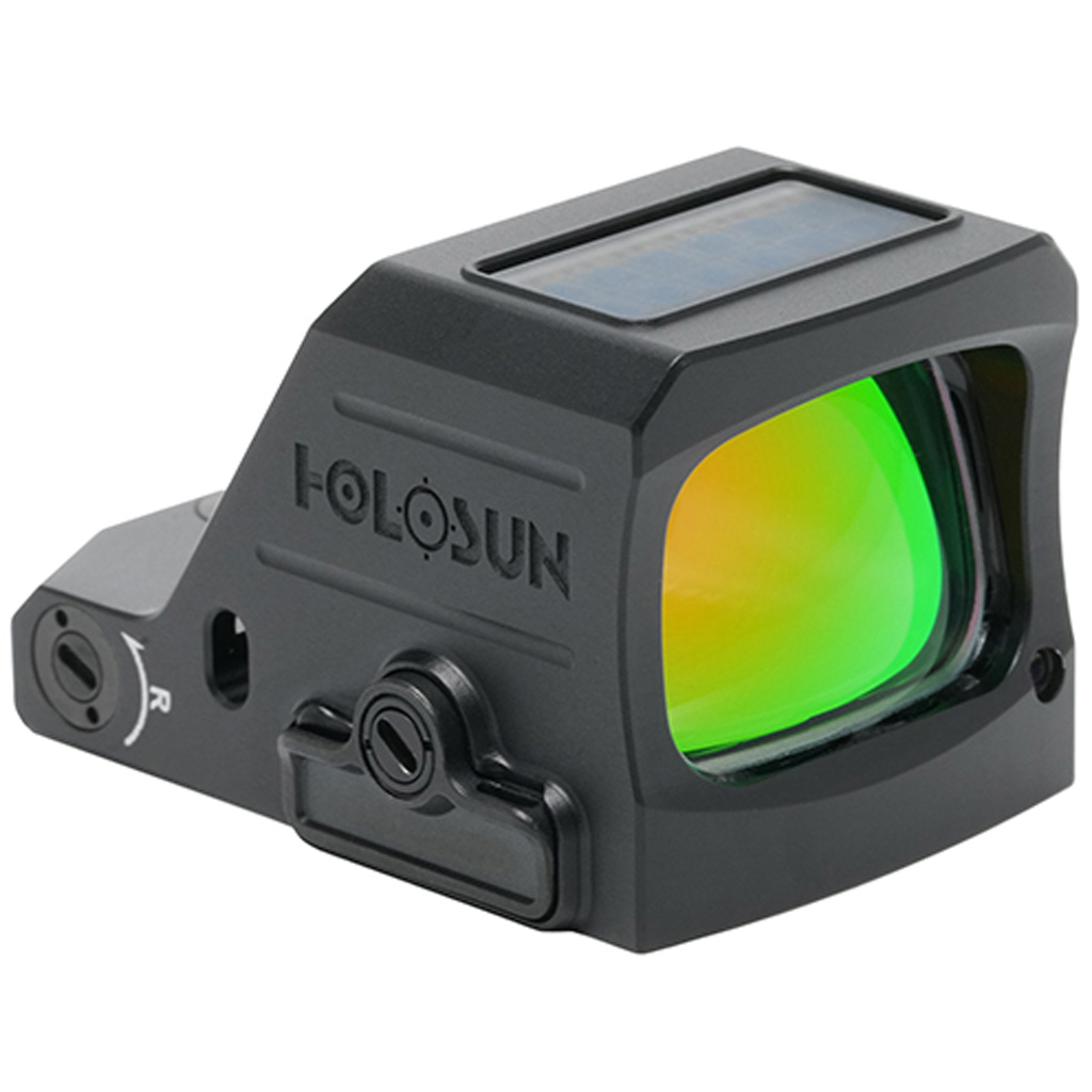 The Holosun HE407C-X3 is a reflex sight built around an RMR footprint with a 2 MOA green dot and a Multi-Reticle System. Automatic brightness control uses Solar Failsafe to help manage illumination as lighting changes, and Shake Awake includes memory and lockout functions. It runs on a side-tray CR1632 battery rated up to 100,000 hours. Built with a 7075-T6 aluminum housing, Super LED, and multilayer reflective glass, it is rated IP67 waterproof and 5000G vibration resistant.
