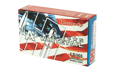 Designed for smooth-bore barrels, Hornady American Whitetail Rifled Slugs are loaded with a 1-ounce foster style slug. The hollow point style slug features a tough, lead alloy core loaded to 1,600 feet per second. The compression style wad protects the slug at ignition and helps to seal the bore for maximum velocity.