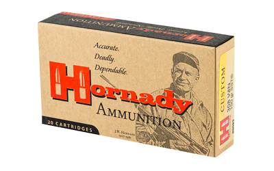 An industry leader and customer favorite, Custom(TM) ammunition balances expansion and penetration and is well-suited to medium and large sized game. Every round of Hornady(R) Custom(TM) ammunition is hand inspected before packaging to ensure the highest levels of quality control.