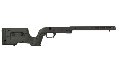 The XRS Chassis is designed for shooters that want the fit and feel of a traditional shaped rifle stock with the benefits of a modern precision rifle chassis system. Each XRS Chassis is constructed from a full-length CNC machined core of 6061 aircraft grade aluminum wearing high strength textured polymer panels for insulation from the elements. The precision aluminum V-block bedding system ensures fit and function to maximize the accuracy of any rifle action. The XRS Chassis features a replaceable over molded and textured grip system, with both an angled grip and a vertical grip included in box. The XRS Chassis is the most advanced and configurable crossover stock on the market and is the ideal performance upgrade for any factory rifle or foundation for a custom rifle build. Weighing in at 3.9lbs (depending on inlet), the XRS is ideal for both hunting or target rifles. The XRS features adjustable length of pull via spacers from 13.25″ to 15+, and a quick adjust cheek piece to adjust for scope height over bore. The XRS accepts standard AICS pattern magazines and has an easy to manipulate ambidextrous magazine latch. The generous 12″ long Forend comes with M-LOK slots built in for accessory mounting and attachment of ARCA or picatinny rails.