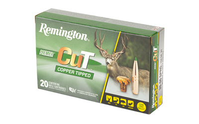 Premier CuT’s monolithic copper alloy bullet gives high accuracy and terminal performance across all hunting ranges. Maximize your aerodynamic efficiency and weight retention with optimal penetration, lead-free. Loaded with Remington’s best components, Premier CuT is your new copper tipped option for ultimate precision. Available in a lineup of popular big game centerfire cartridges, including 6.5 PRC, 7 PRC and 300 PRC.