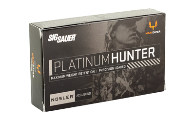 The Sig Sauer Platinum Hunter line of ammunition was created in partnership with the hunting experts at Meateater. This premium offering is precision-loaded with a Nosler Accubond projectile, delivering unmatched weight retention and deep penetration on big game. Each round is enclosed in a corrosion-resistant nickel case for smooth cycling, ensuring reliability in all conditions. And with waterproofing for extreme weather resistance, nothing will stop you from making the perfect shot.