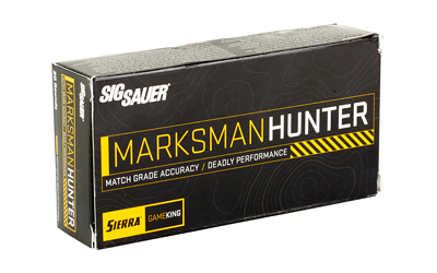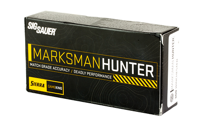 The Sig Sauer Marksman Hunter line of ammunition was designed with the practical hunter in mind. Precision-loaded for competition-level accuracy at long range, these rounds will be your reliable companion in the field. The boat tail design reduces drag, ensuring a flatter trajectory and less wind drift – for those moments when precision really counts. Each bullet features a thick jacket for consistent performance on medium game, with a skived bullet nose to ensure consistent expansion, delivering the power you need.