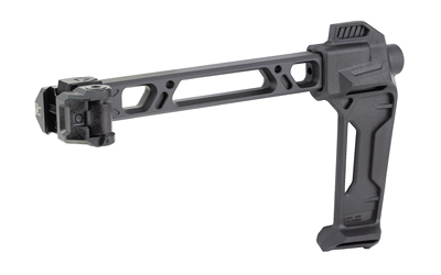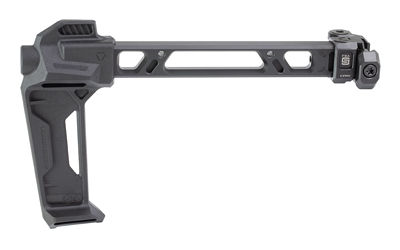 The Single Folder utilizes the same arm and modular stock/stabilizer end pieces as the Strike Dual Folding Stabilizer. What’s new is that it has a strengthened hinge made out of steel, instead of aluminum, making it extremely rigid and robust. The fitment is also perfect with little to no play when extended and folded. This folder only folds to a single side but can do so at anytime without any reconfiguration or use of a button.