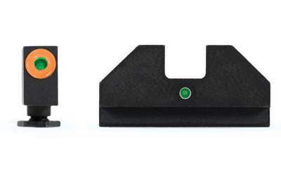 Shoot better day and night. XS F8 night sights increase front sight focus by using a large, high-contrast front sight for fast sight acquisition. The wide notch rear sight easily aligns with the front sight and increases front sight visibility. XS F8 night sights give you the best notch and post solution for fast sight acquisition in all lighting conditions. Green tritium in front and rear glow in low light to aid in sight alignment. Highly visible orange ring is designed for maximum visibility in bright to low light levels, with photoluminescent particles absorbing ambient light to glow in low light. Base of notch in rear sight is rounded to draw focus to the top edge of the sights to aid in proper alignment. Rear sight overhangs back toward shooter to reflect glare down away from the shooter’s eye. Rear sight ledge for one-handed slide manipulations. Fits in common holsters. Install by hand or sight pusher tool. Fits Glock models 20, 21, 29, 30, 30S, 37, 40, & 41.